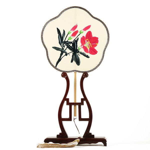 產品名:紅木柄真絲雙面噴繪團扇(多款)